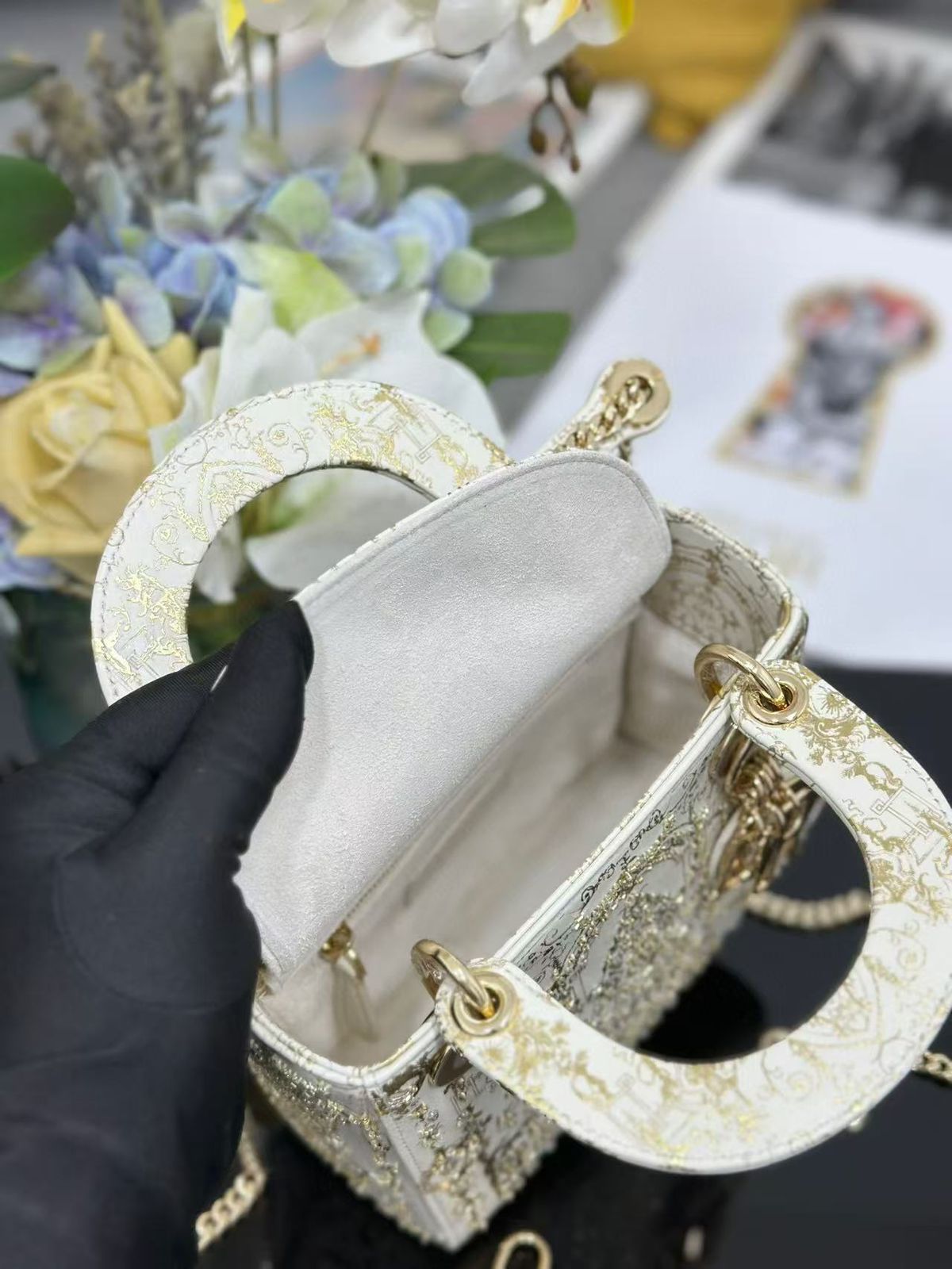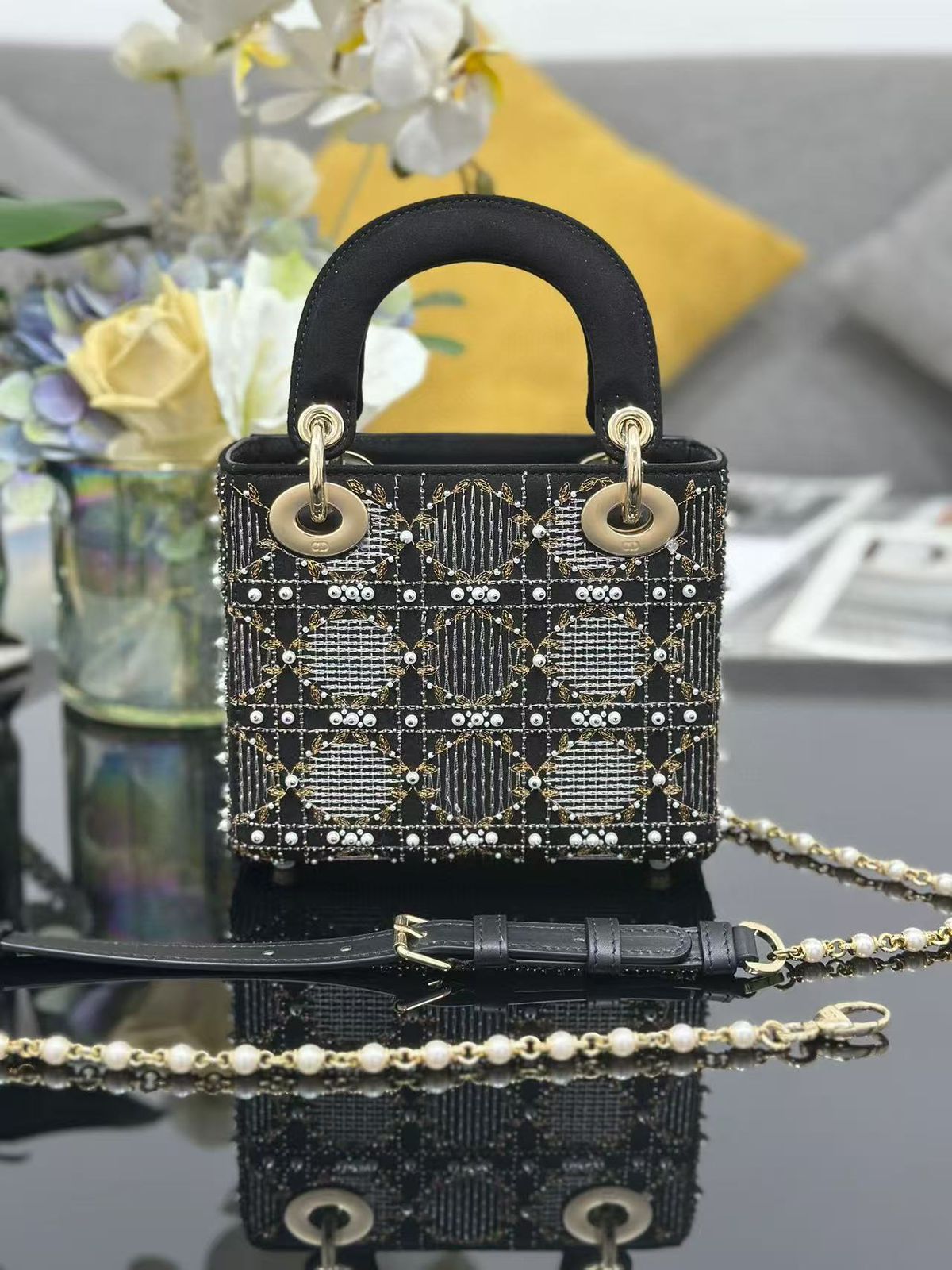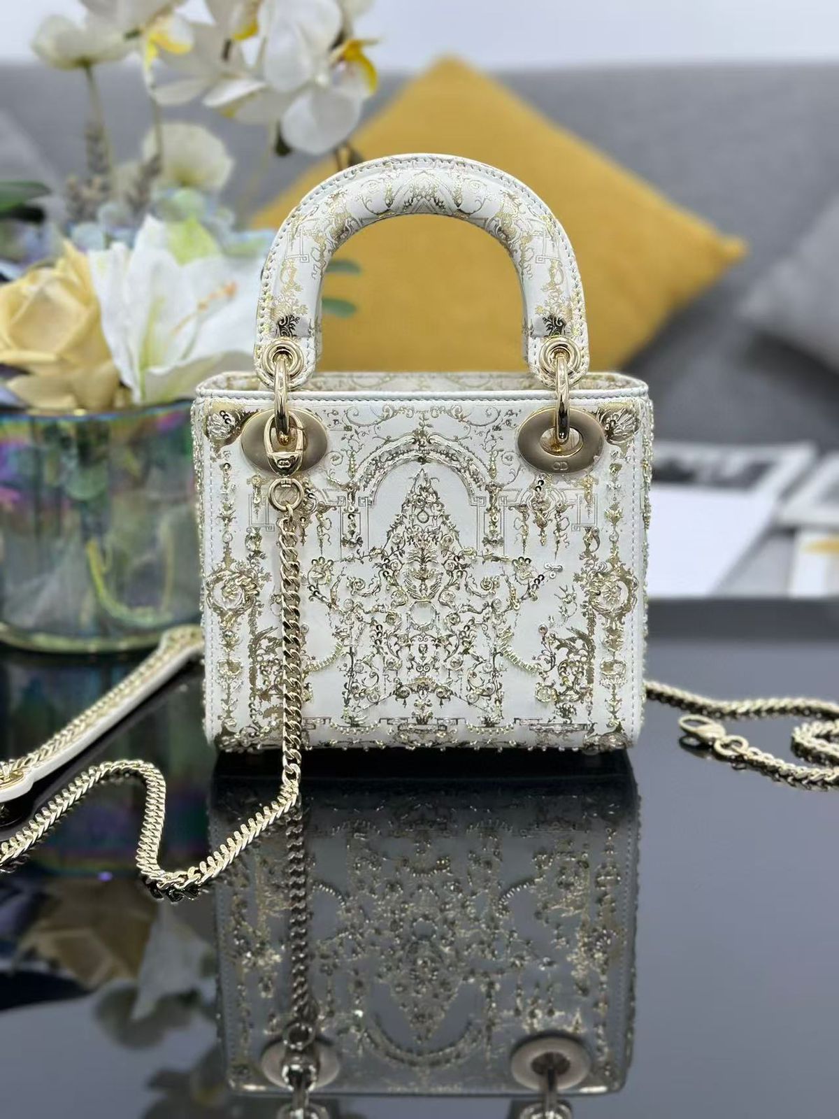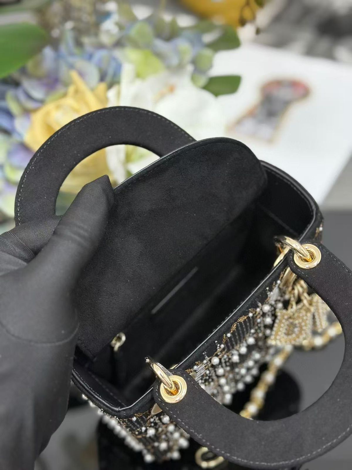 Lady Dior Small Gray Metallic-Calfskin And Satin With Bead Embroidery