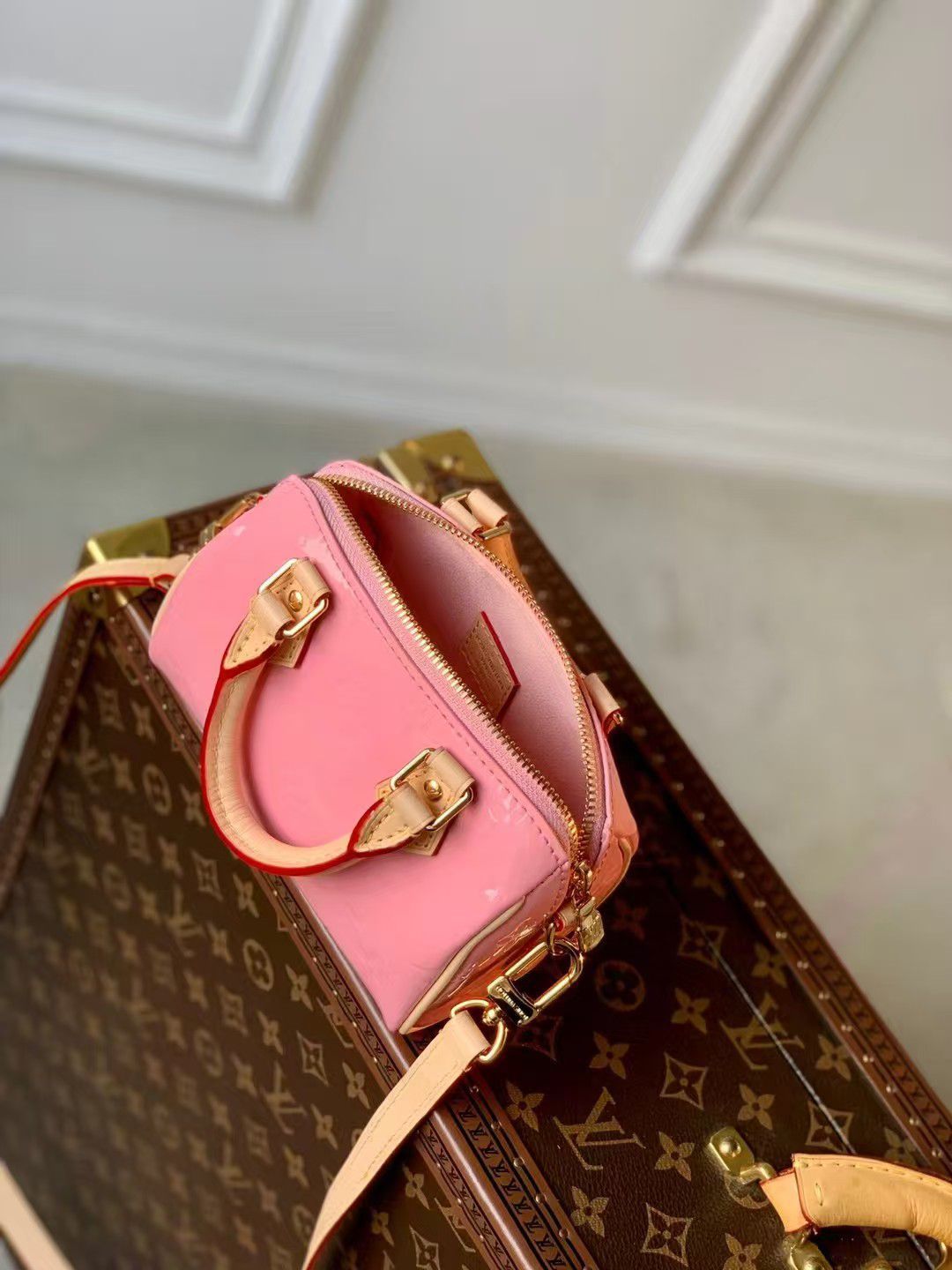 LV Vernis Monogram Nano Speedy Mochi Pink